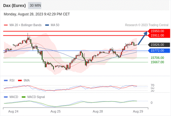 如跌破 15772 ,德国DAX指数期货 (Eurex) 目标方向定在 15706 和 15667 。