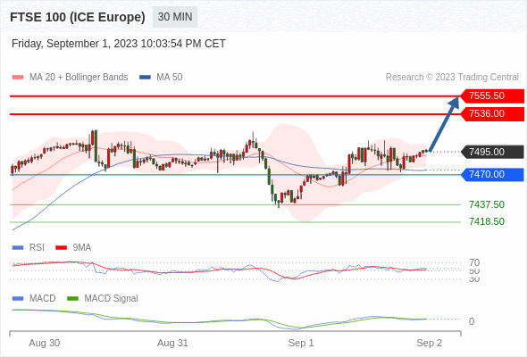 如跌破 7470 ,英国富时100指数期货 目标方向定在 7437.50 和 7418.50 。
