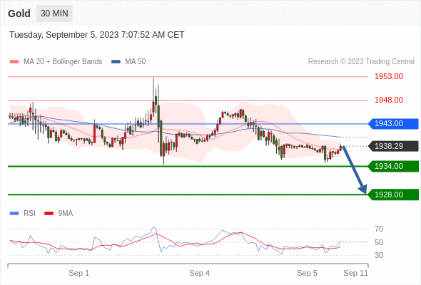 在 1943.00 之下,看跌,目标价位为 1934.00 ,然后为 1928.00 。