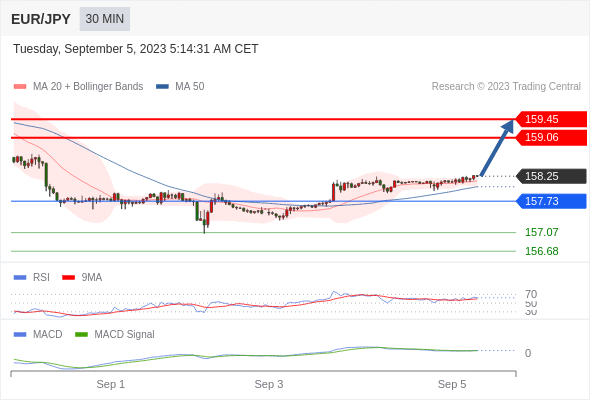 欧元/日元 当日内: 看涨,当 157.73 为支撑位。