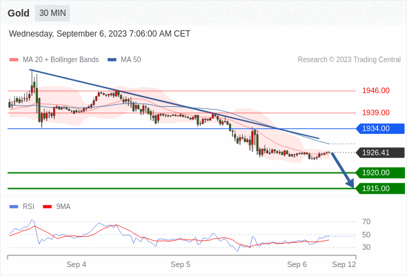 在 1934.00 之下,看跌,目标价位为 1920.00 ,然后为 1915.00 。