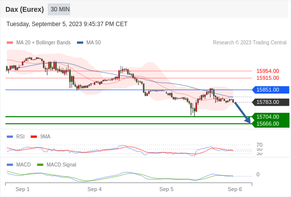 德国DAX指数期货 (Eurex)? 当日内: 看跌,在 15851.00 之下。