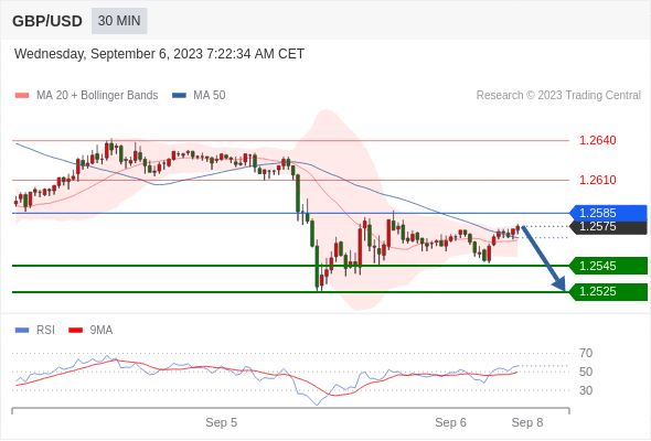 在 1.2585 之下,看跌,目标价位为 1.2545 ,然后为 1.2525 。