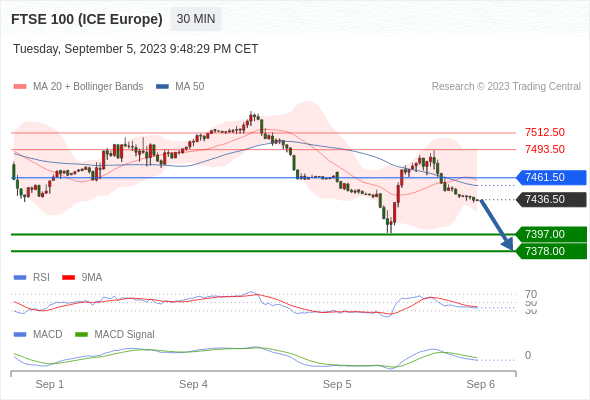 英国富时100指数期货 当日内: 看跌,在 7461.50 之下。