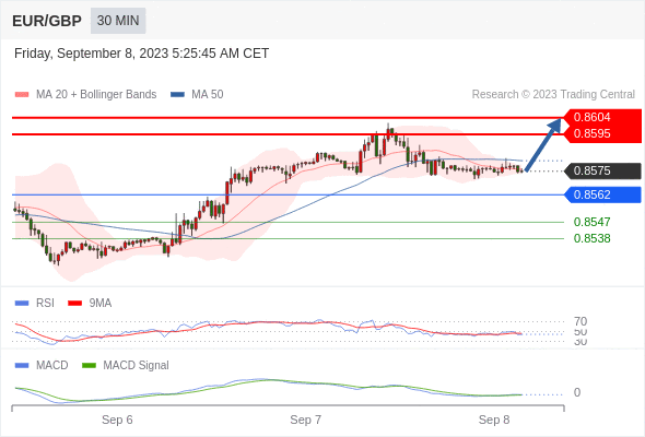欧元/英镑 当日内: 有上涨的可能,目标价位定在 0.8604 。