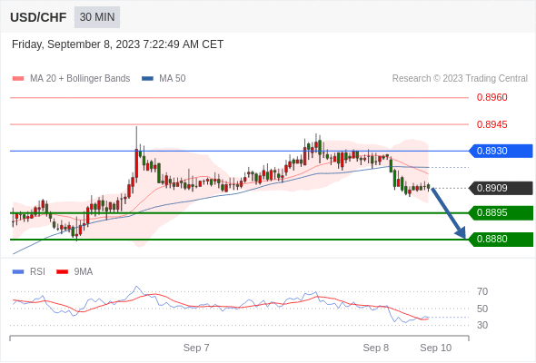 在 0.8930 之下,看跌,目标价位为 0.8895 ,然后为 0.8880 。