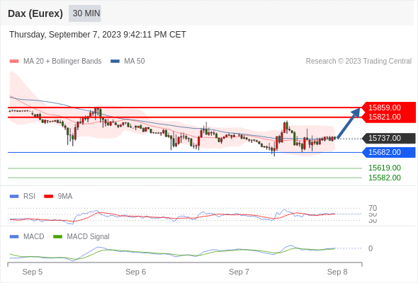 如跌破 15682 ,德国DAX指数期货 (Eurex) 目标方向定在 15619 和 15582 。