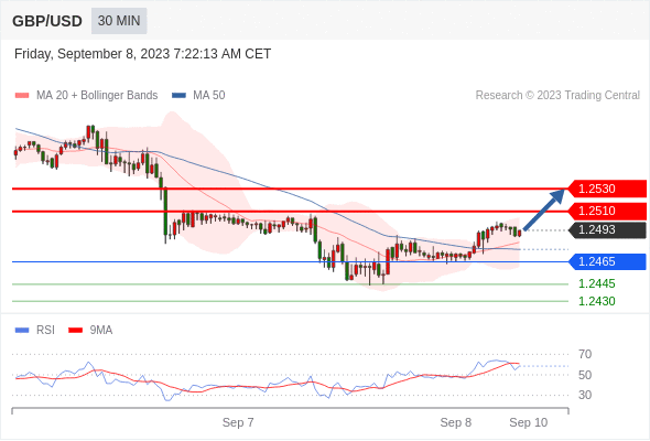 在 1.2465 之上,看涨,目标价位为 1.2510 ,然后为 1.2530 。