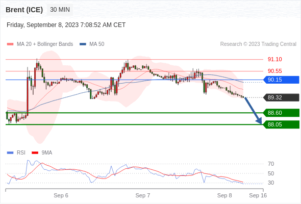 在 90.15 之下,看跌,目标价位为 88.60 ,然后为 88.05 。