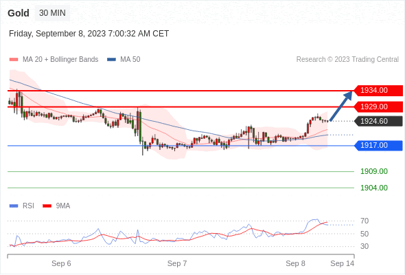 在 1917.00 之上,看涨,目标价位为 1929.00 ,然后为 1934.00 。