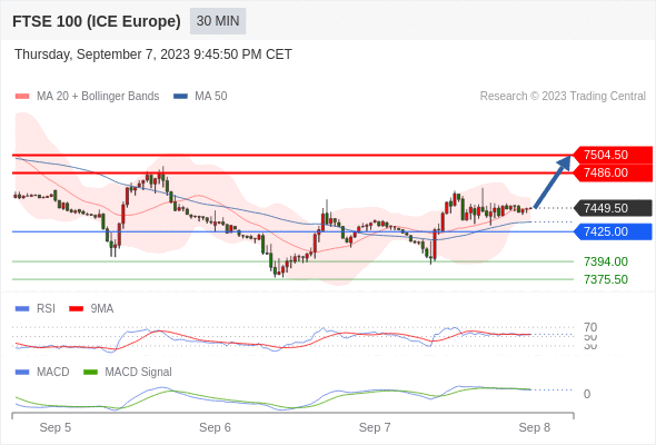 英国富时100指数期货 当日内: 看涨,当 7425.00 为支撑位,目标定在7504.50。