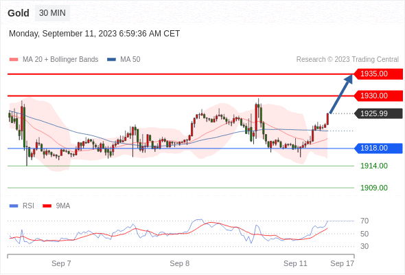 在 1917.00 之上,看涨,目标价位为 1929.00 ,然后为 1934.00 。