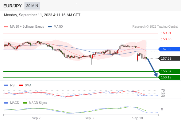 欧元/日元 当日内: 看涨,当 157.25 为支撑位。