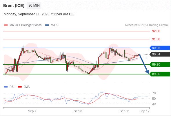 在 90.15 之下,看跌,目标价位为 88.60 ,然后为 88.05 。
