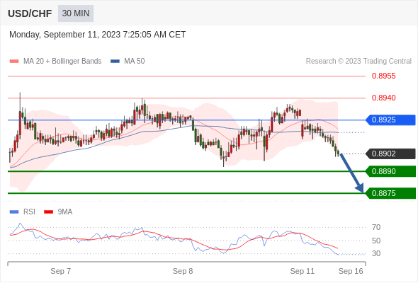 在 0.8930 之下,看跌,目标价位为 0.8895 ,然后为 0.8880 。