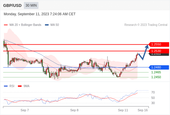 在 1.2465 之上,看涨,目标价位为 1.2510 ,然后为 1.2530 。