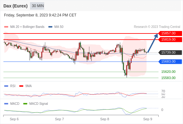 如跌破 15682 ,德国DAX指数期货 (Eurex) 目标方向定在 15619 和 15582 。