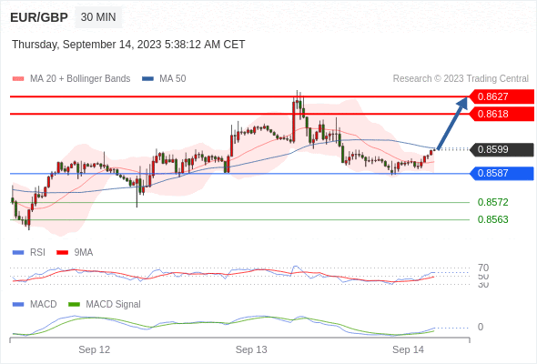 欧元/英镑 当日内: 看涨。