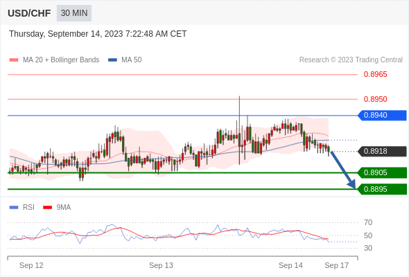 在 0.8940 之下,看跌,目标价位为 0.8905 ,然后为 0.8895 。