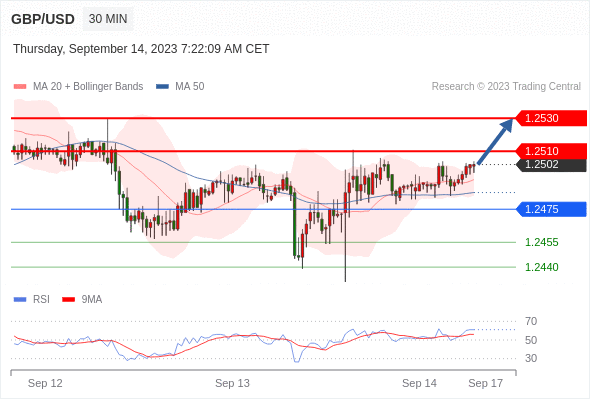 在 1.2475 之上,看涨,目标价位为 1.2510 ,然后为 1.2530 。