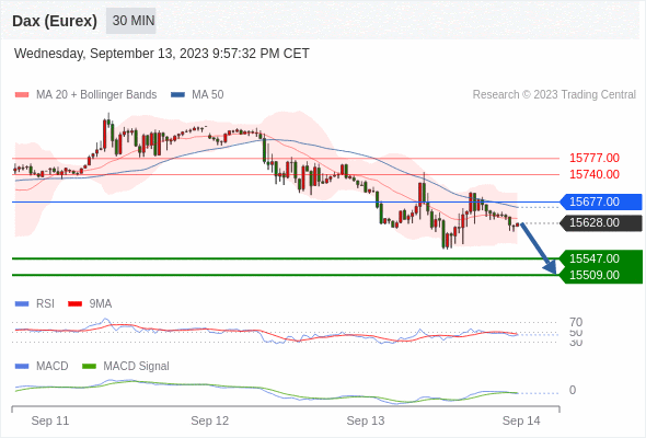 德国DAX指数期货 (Eurex)? 当日内: 看跌,在 15677.00 之下。