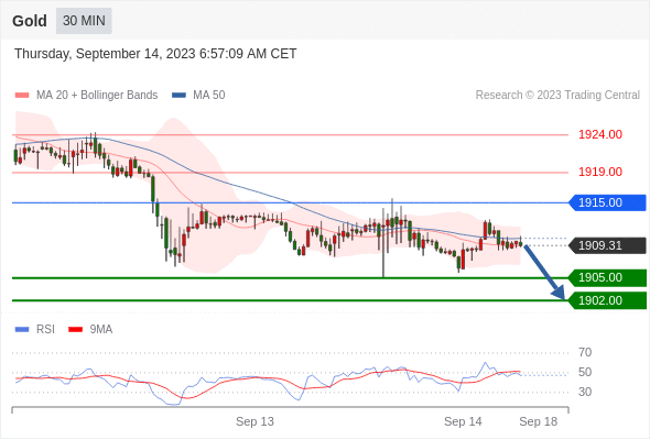 在 1915.00 之下,看跌,目标价位为 1905.00 ,然后为 1902.00 。