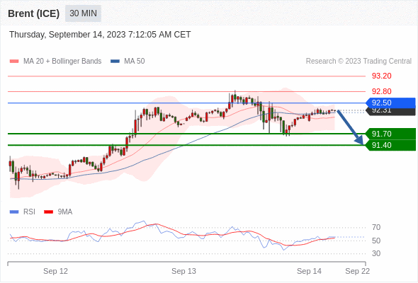在 92.50 之下,看跌,目标价位为 91.70 ,然后为 91.40 。