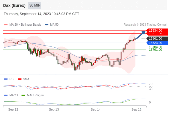 德国DAX指数期货 (Eurex)? 当日内: 看涨,当 15823.00 为支撑位。
