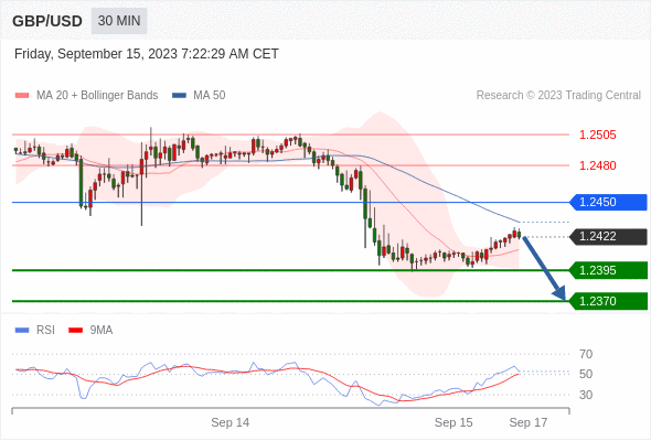 在 1.2450 之下,看跌,目标价位为 1.2395 ,然后为 1.2370 。