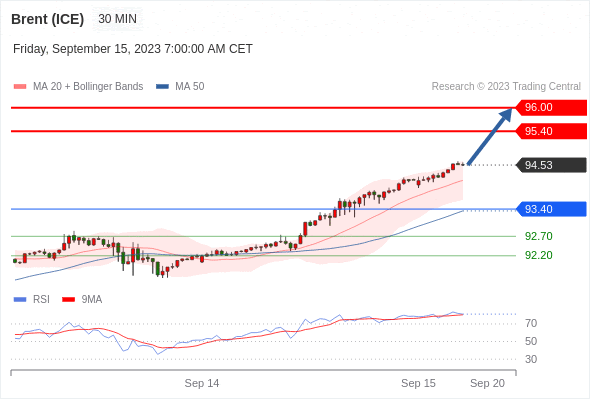 在 93.40 之上,看涨,目标价位为 95.40 ,然后为 96.00 。