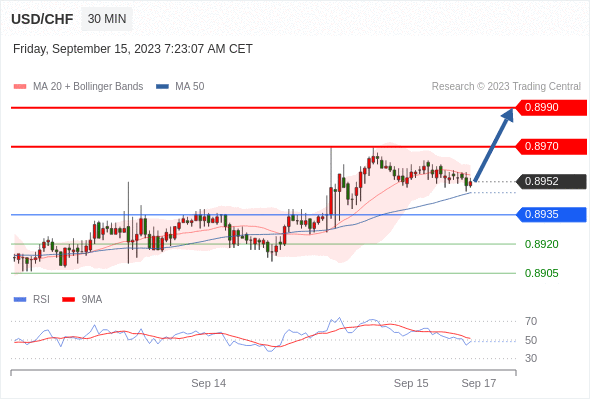 在 0.8935 之上,看涨,目标价位为 0.8970 ,然后为 0.8990 。