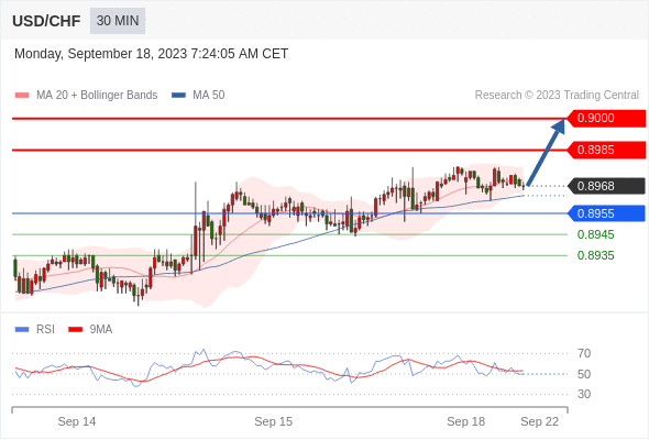 在 0.8955 之上,看涨,目标价位为 0.8985 ,然后为 0.9000 。