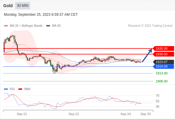 在 .00 之上,看涨,目标价位为 1930.00 ,然后为 1935.00 。