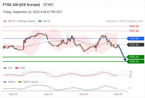 英国富时100指数期货 当日内: 看跌,在 7762.50 之下。