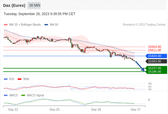 德国DAX指数期货 (Eurex)? 当日内: 看跌,在 15424.00 之下。