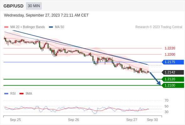 在 1.2175 之下,看跌,目标价位为 1.2120 ,然后为 1.2100 。