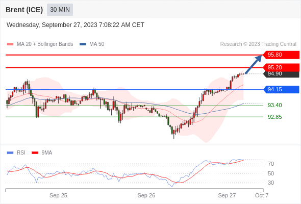 在 94.15 之上,看涨,目标价位为 95.20 ,然后为 95.80 。