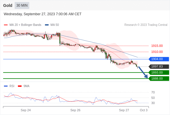 在 1904.00 之下,看跌,目标价位为 1893.00 ,然后为 1888.00 。