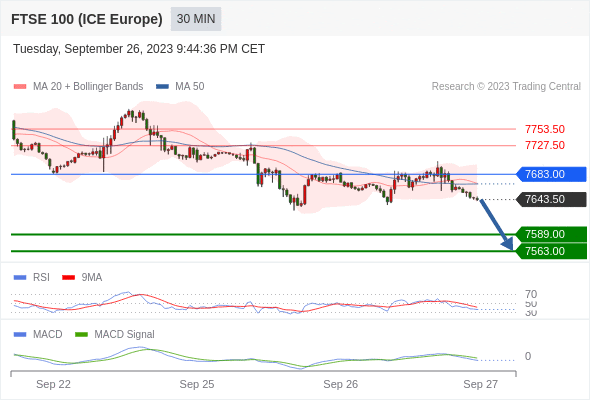 英国富时100指数期货 当日内: 看跌,在 7683.00 之下。