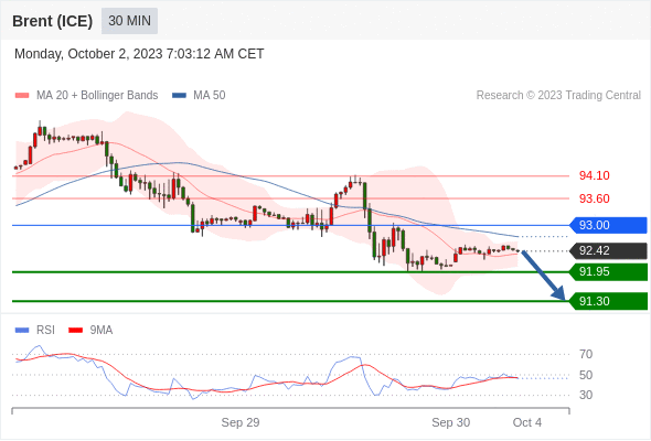 布伦特原油 (ICE)? (Z3)? 当日内: 短期关键阻力位在93.00。
