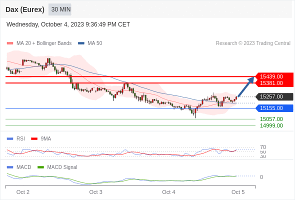 如跌破 15155 ,德国DAX指数期货 (Eurex) 目标方向定在 15057 和 14999 。