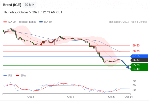 在 87.15 之下,看跌,目标价位为 85.20 ,然后为 84.40 。