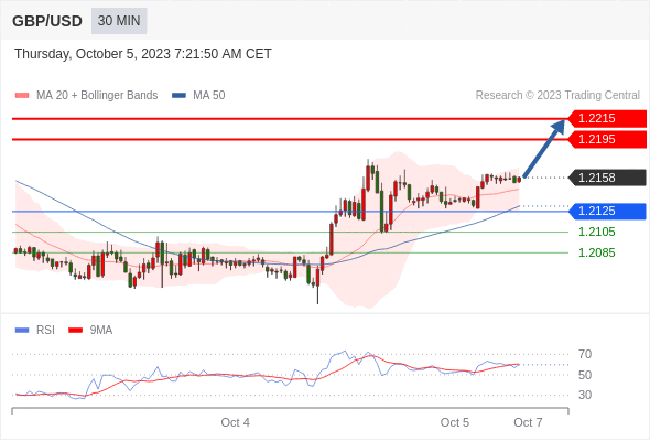 在 1.2125 之上,看涨,目标价位为 1.2195 ,然后为 1.2215 。