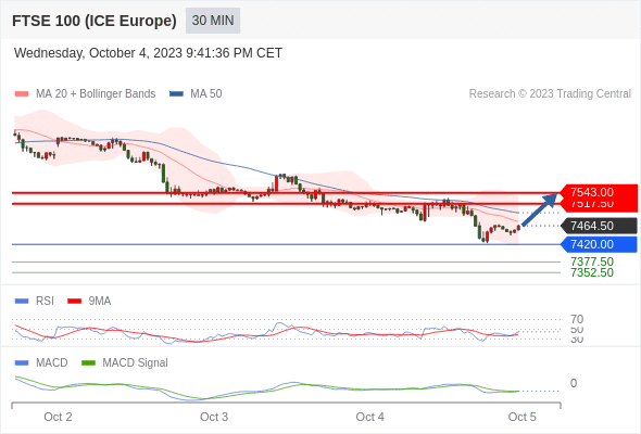 RSI技术指标低于50。 MACD技术指标呈现看跌状态并 处在其信号线的上方。 此外,价位处在其20个时期及50个时期移动平均线下方 ( 当前是 7474.60 和 7495.60 )。