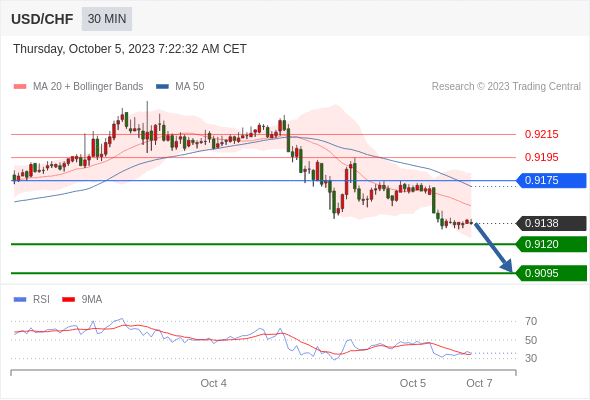 在 0.9175 之下,看跌,目标价位为 0.9120 ,然后为 0.9095 。