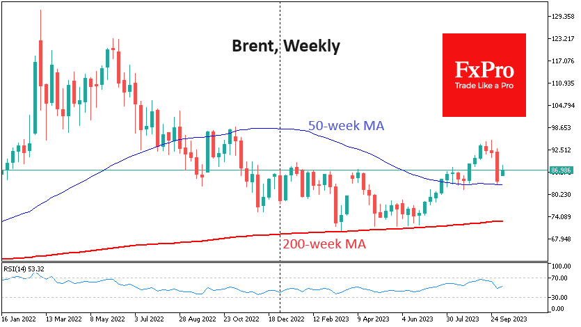 布伦特原油价格从每桶95美元迅速下跌至83美元,大幅跌破50日移动均线。上周三的下跌表明,熊市牢牢控制着市场。