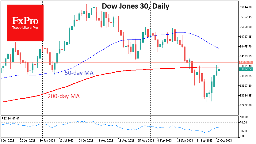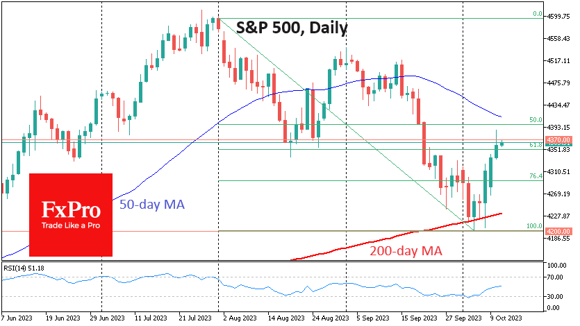 技术走势也显示了一个不错的反转。标准普尔500指数在10月前几个交易日多次跌至200日移动均线时获得支撑。上周五又有人试图低价抛售,但失败了。在六个小时内,该指数上涨2.8%。这是一个强有力的逆转。