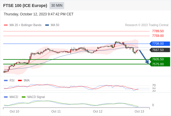英国富时100指数期货 当日内: 看跌,在 7708.00 之下。