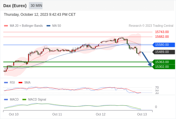 如突破 15580 ,德国DAX指数期货 (Eurex) 目标方向为 15682 和 15743 。