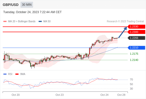 在 1.2210 之上,看涨,目标价位为 1.2300 ,然后为 1.2330 。